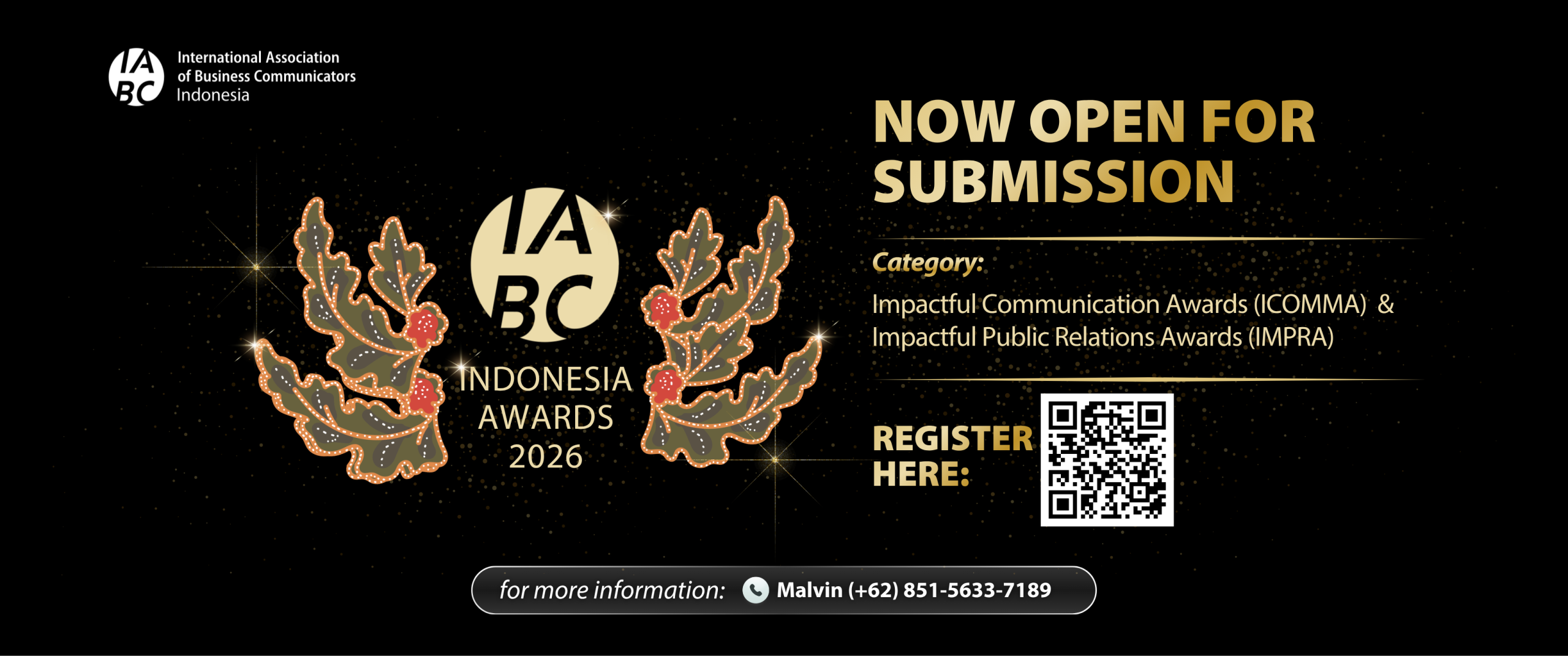 The highlight of this series of events will take place at the IABC Indonesia Conference & Awarding Night, held on Friday, November 14, 2025, at The St. Regis Hotel, Kuningan, Jakarta, carrying the theme “Strategic Communications at the Heart of Trust, Humanity, and Digital Impact.” This event will bring together communication practitioners and leaders from various sectors to share insights and best practices in navigating digital transformation within the communication industry. IABC Indonesia is also offering special rates for students who wish to participate, either offline or online. Registration can be completed through the following link.